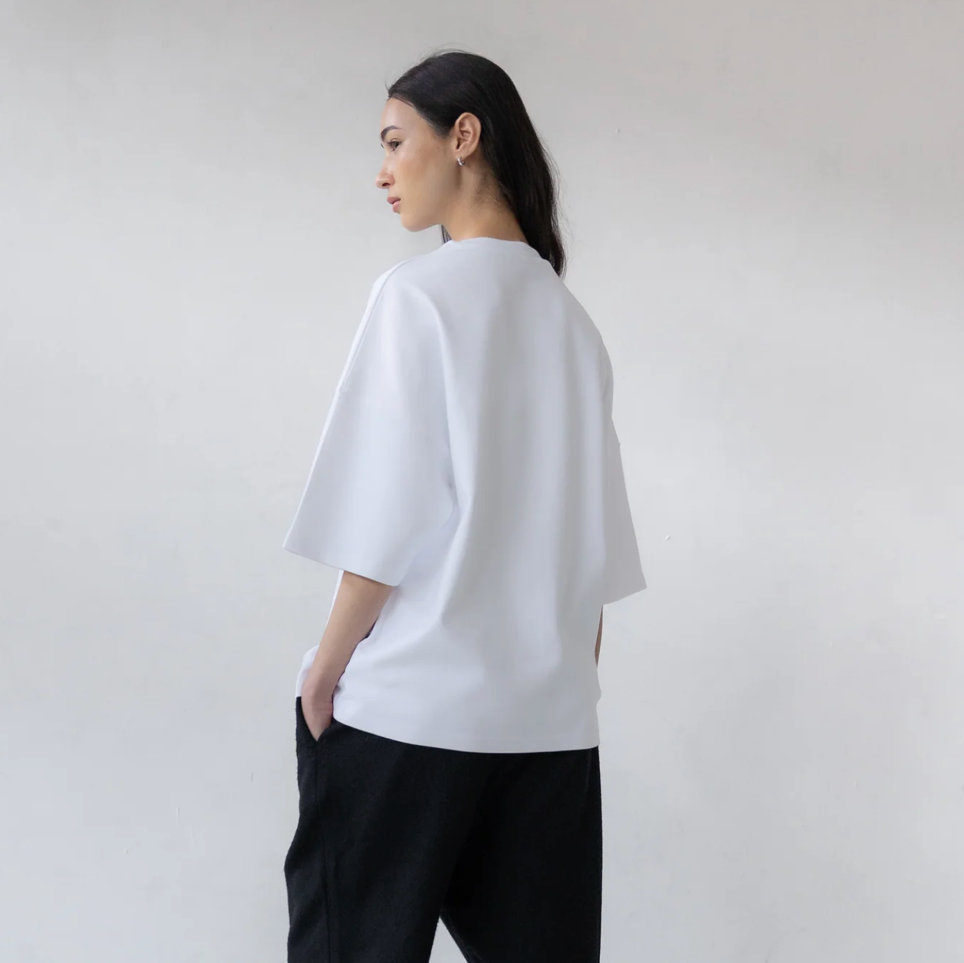 The John Laren Heavyweight Tee is made in Portugal from a densely woven, 300 GSM pure Pima cotton for a distinctly soft feel and substantial weight. Designed with dropped shoulders and half-length sleeves, the oversized fit allows for a modern, controlled drape.